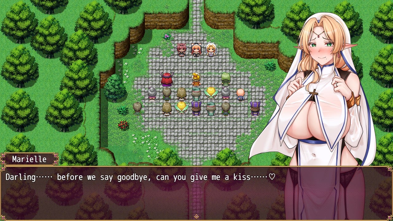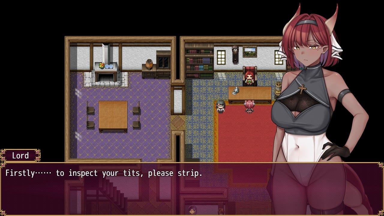 The plot is serviceable and follows the typical tropes seen in this kind of story, in which the protagonist (or protagonists in this case) is initially reluctant to do anything lewd—or downright tricked into doing it—but she becomes lustier as the game progresses until she wants nothing but to get dicked down hard. It also features different endings based on a specific character's sluttiness and whether you passed the minimum human interaction required. That said, the plot has some consistency issues. For example, you may reach the point with one of the many NPCs where the girl in question acts like a turboslut, but she's back to being prudish when you talk to a different NPC.